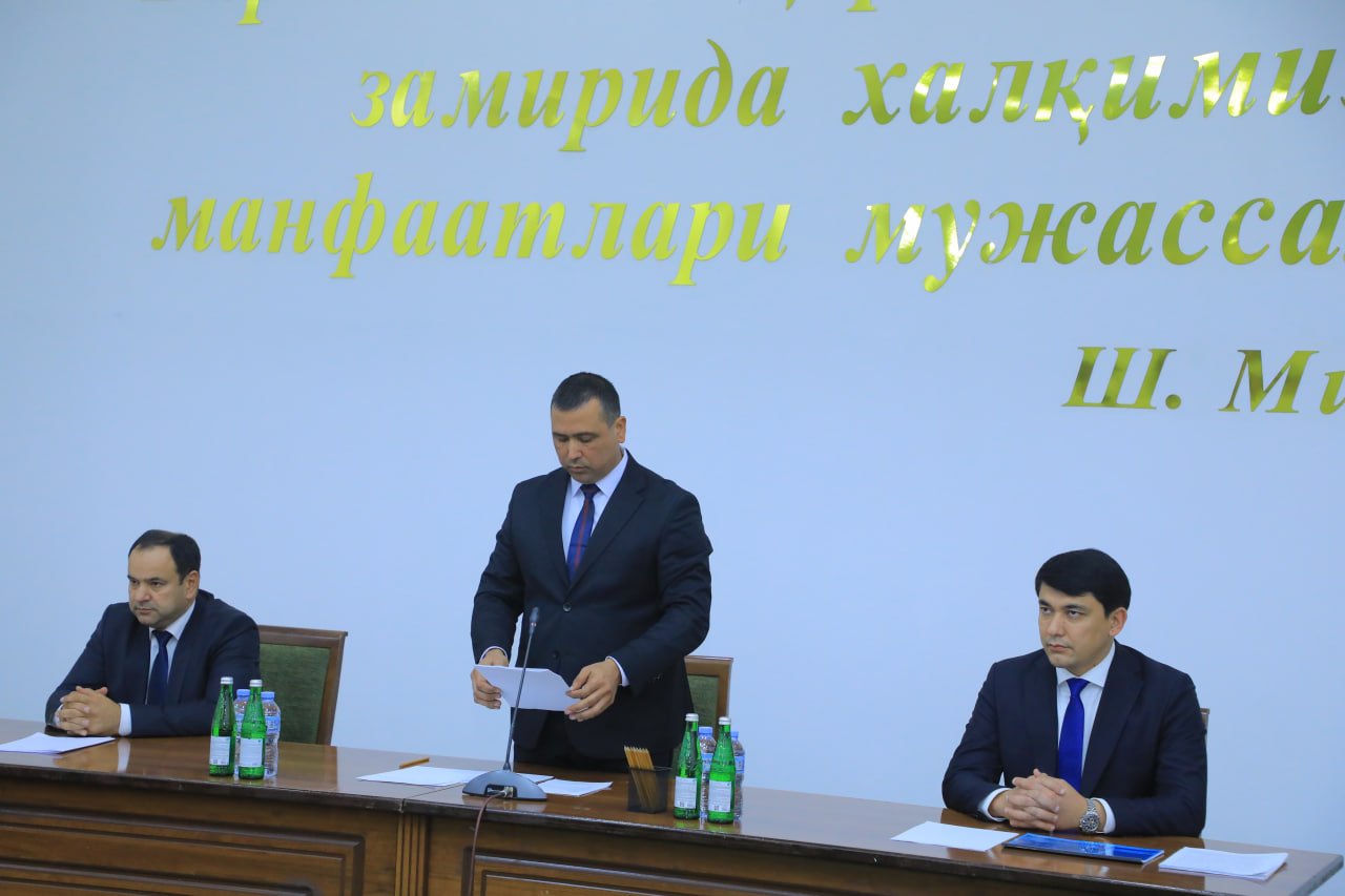 Шундан сўнг вилоят ҳокимининг ўринбосари Ғуломжон Муродхўжаев вилоят ҳокимининг Дилшодбек Мирханов Учқўрғон тумани ҳокими лавозимига тайинлаш тўғрисидаги қарорини ўқиб эшиттирди.