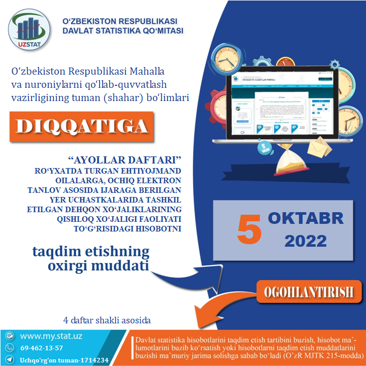 Davlat statistika hisoboti topshiruvchi fermer ho'jaliklar diqqatiga!!!