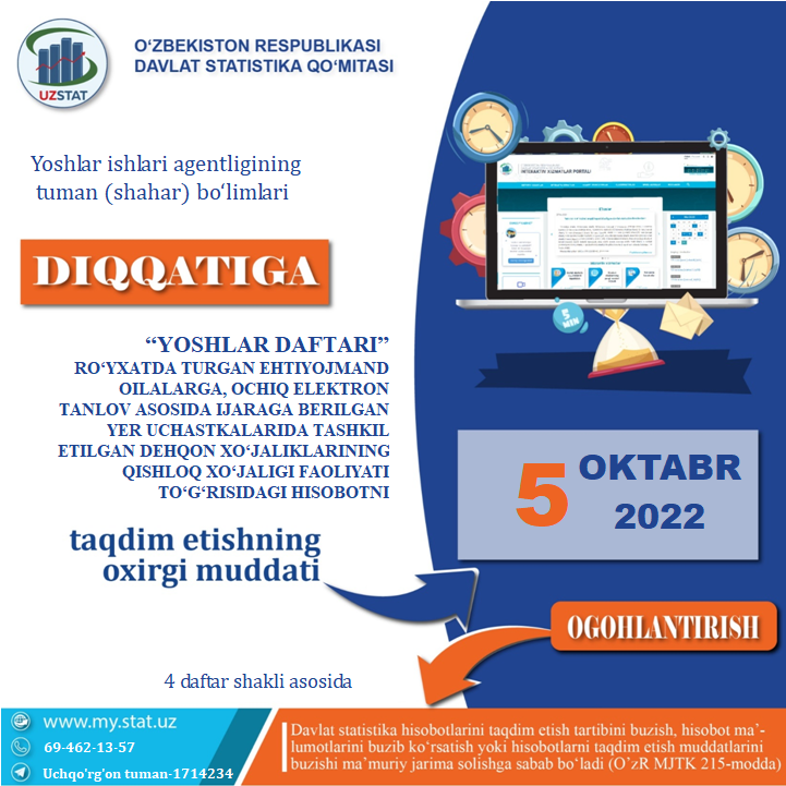 Davlat statistika hisoboti topshiruvchi qishloq ho'jaligi faoliyati bilan shug'ullanuvchilar diqqatiga!!!