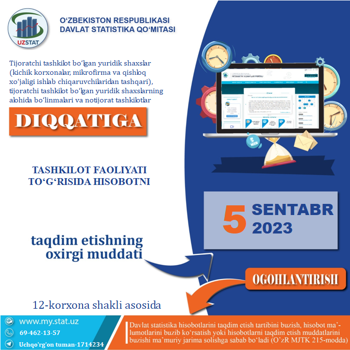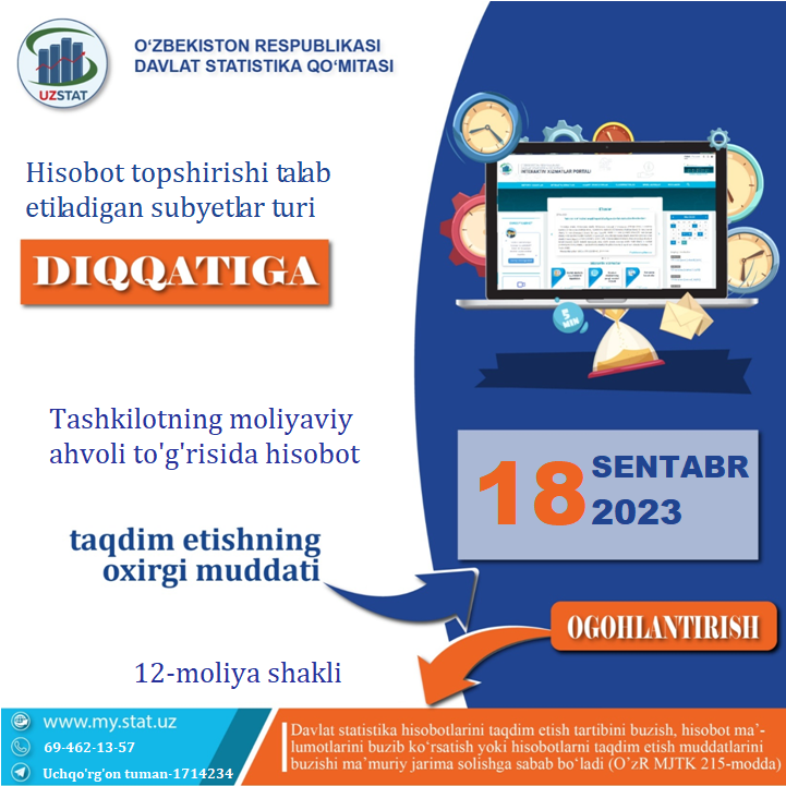 Davlat statistika hisoboti topshiruvchilar diqqatiga!!!