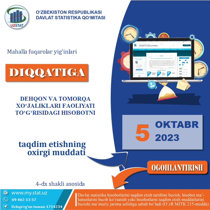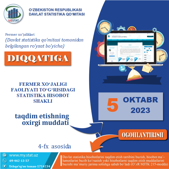 Davlat statistika hisobotini topshiruvchi fermer xo'jaliklar diqqatiga!!!