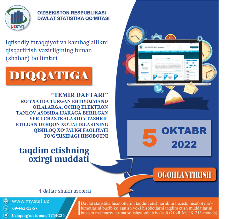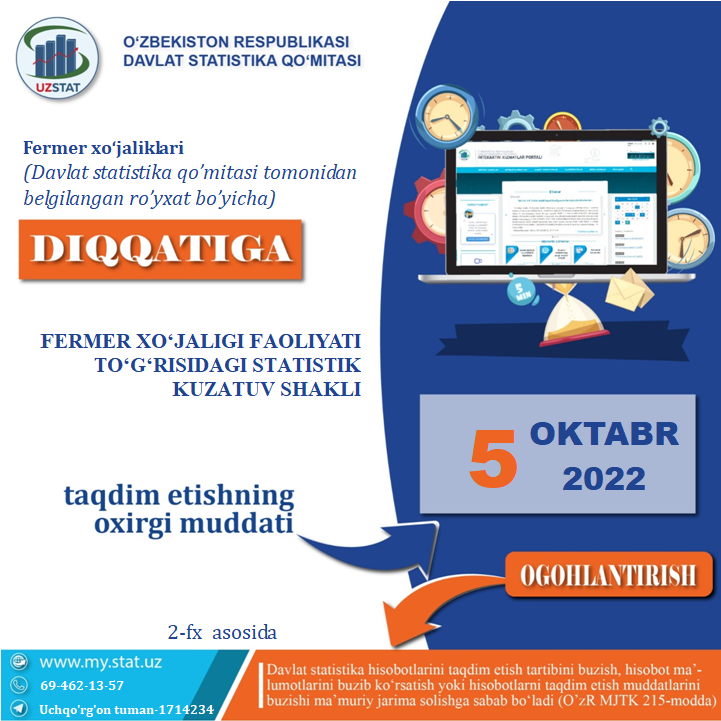 Davlat statistika hisoboti topshiruvchi fermer ho'jaliklar diqqatiga!!!